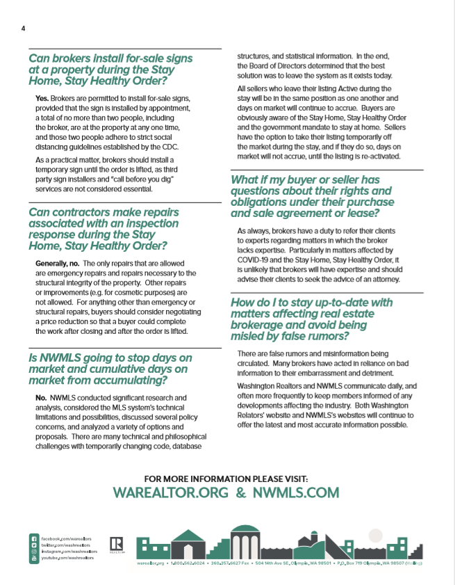 Governor Inslee Updates Stay-at-Home Order Affecting Real Estate Brokers