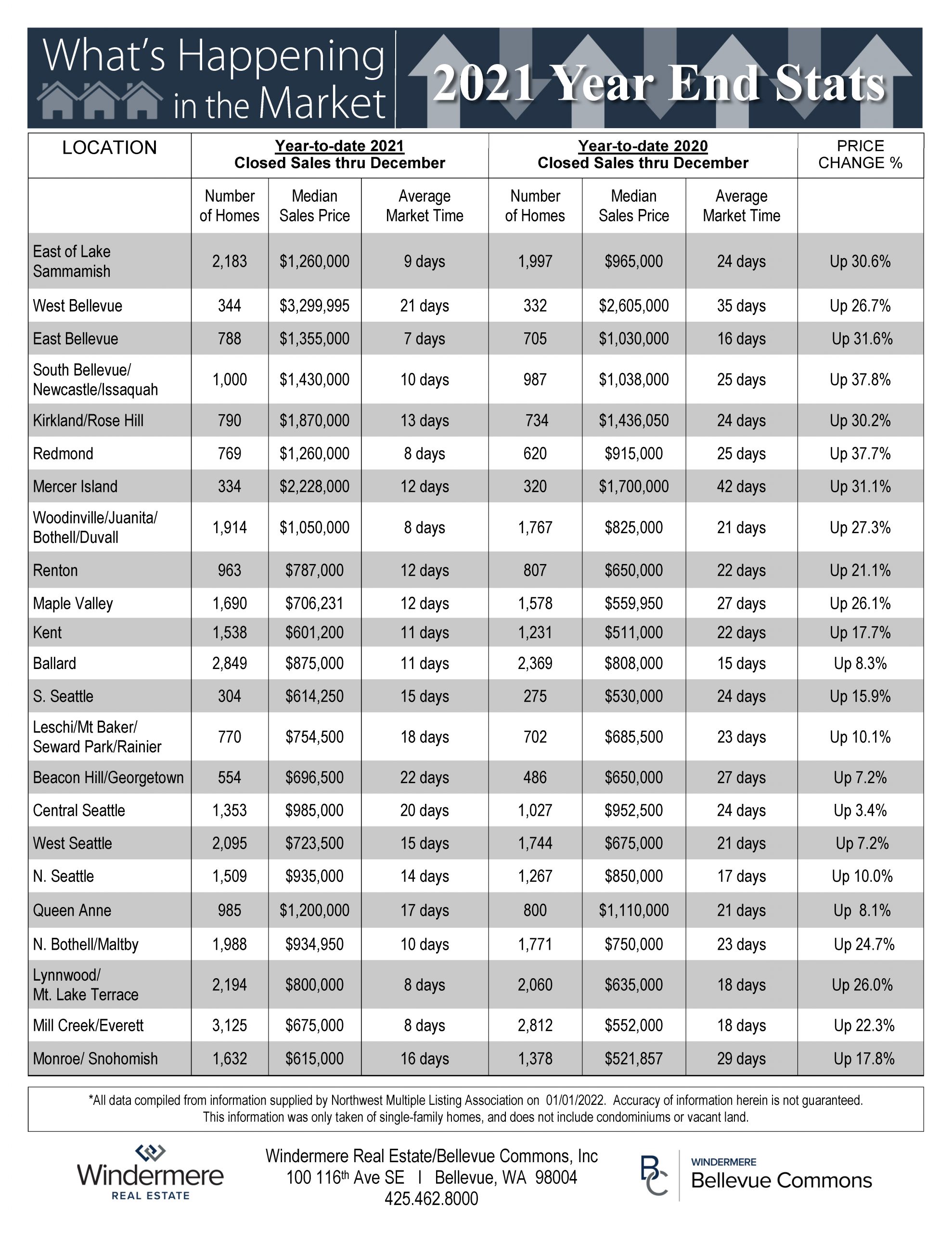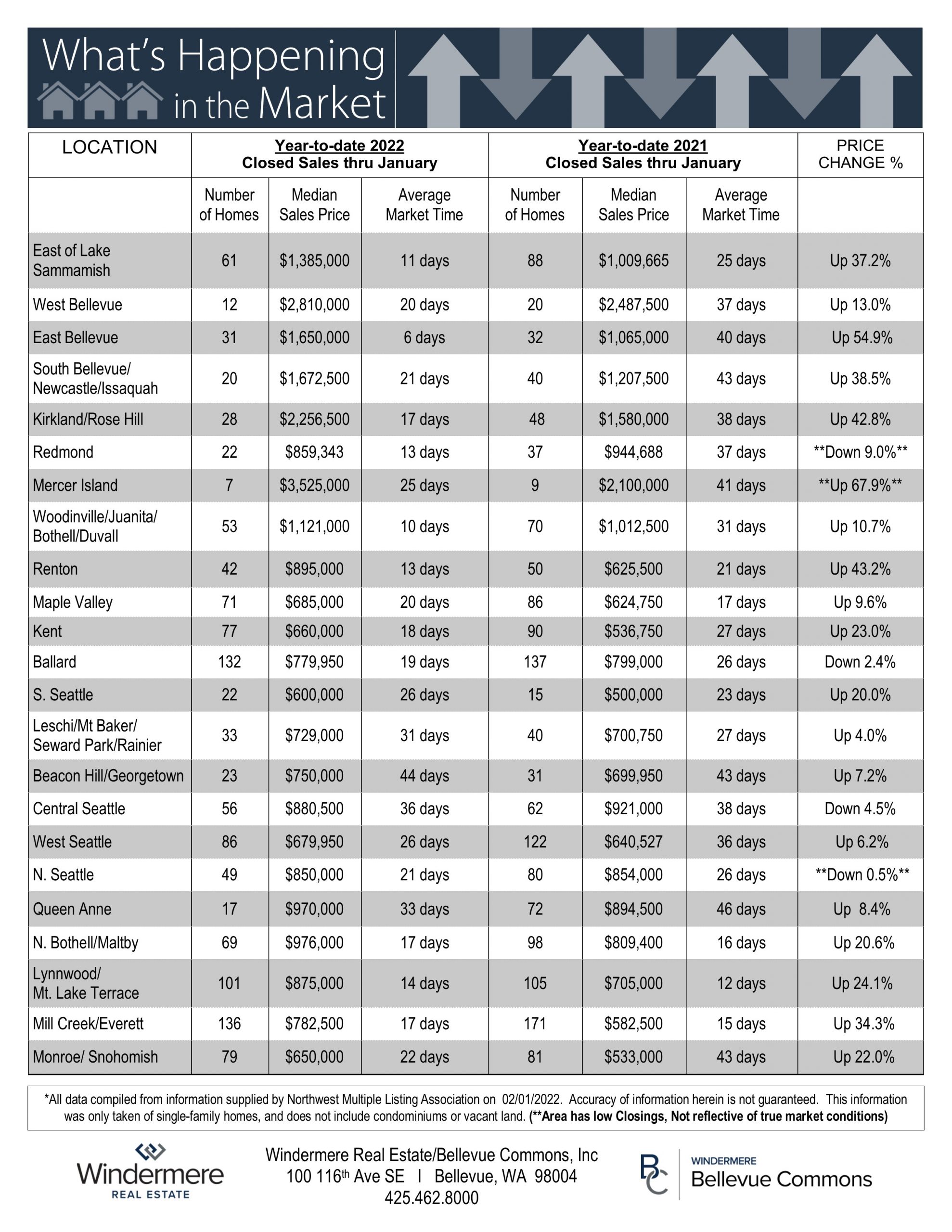 January 2022 YTD Stats in the Seattle/Bellevue area